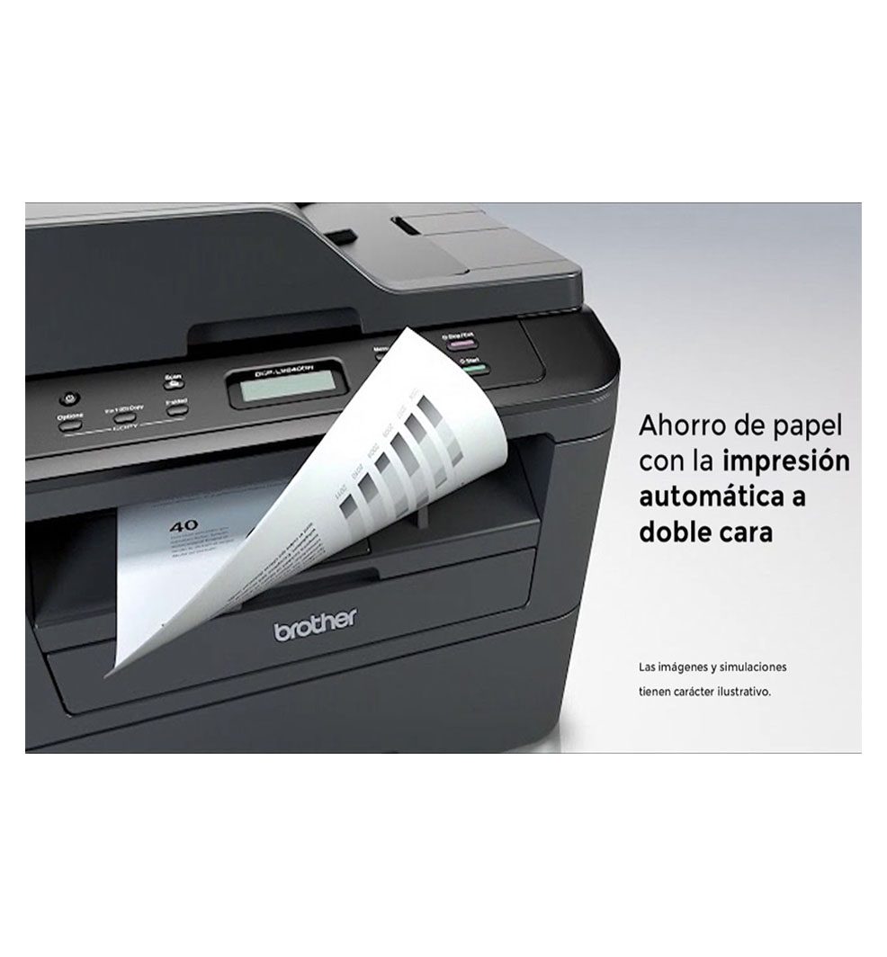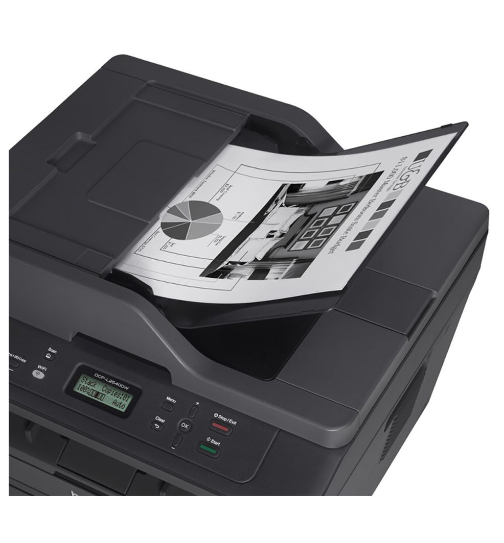 El modelo DCP-L2540DW de Brother es una copiadora multifuncional láser monocromática económica que imprime y copia hasta 30 ppm en blanco y negro, y escanea a color.