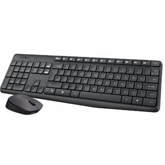 Teclado Logitech + Mouse Mk235 Wireless USB SP Black (920-007901), alta durabilidad y poco peso, ideal para PCs de mesa, resistencia en caso de derrames el liquido drenara fuera del teclado, por lo que no tiene que preocuparse por arruinar su inversión con derrames accidentales. Cuenta con un teclado delgado que es simplemente elegante, con un diseño resistente a derrames, patas resistente y teclas duraderas, el teclado presenta un perfil delgado que agrega una apariencia elegante a su escritorio mientras mantiene sus manos en una posición mas cómoda.