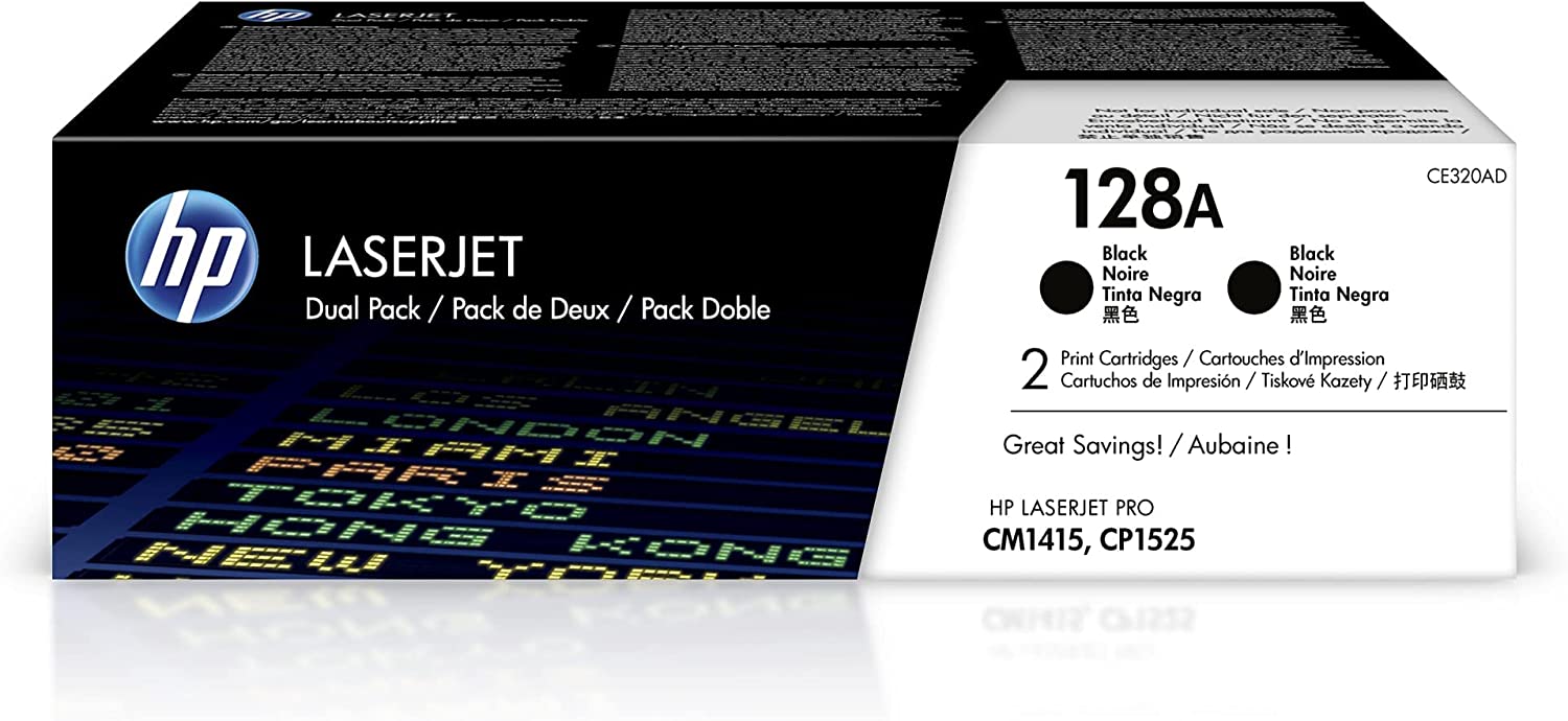 Los cartuchos de tóner HP 128AD Negro (Dual Pack) de código CE320AD cuentan con altos estándares de calidad de impresión y al mejor precio del mercado, recuerda que un cartucho que se encuentra en venta de tóner HP original cuentan con un chip original fabricada especialmente para contabilizar la cantidad de impresión de alta calidad que usted realice en su impresora.